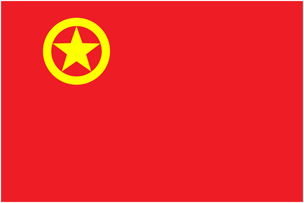 中国共产主义青年团团旗旗面为红色,象征革命胜利;左上角缀黄色五角星,周围环绕黄色圆圈,象征中国青年一代紧密团结在中国共产党周围。