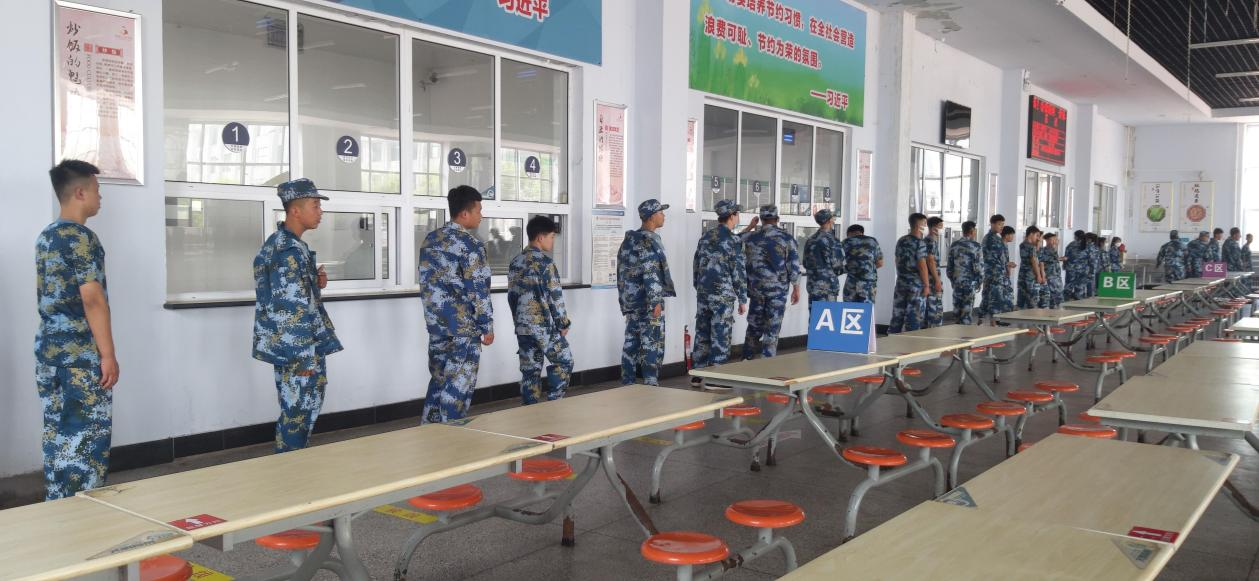 学生在食堂排队打饭